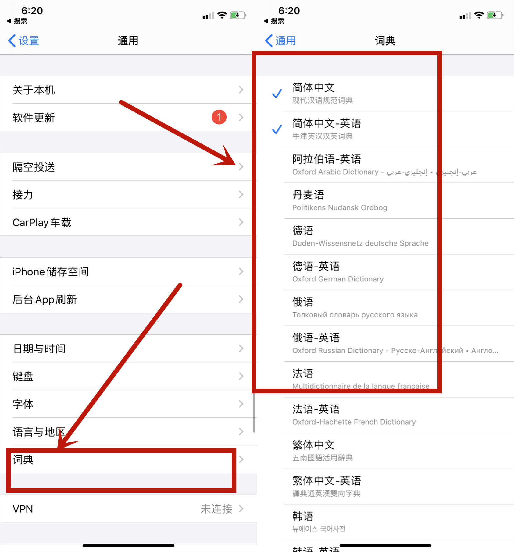 然后依次打开设置——通用——选择"词典",然后切换语种。