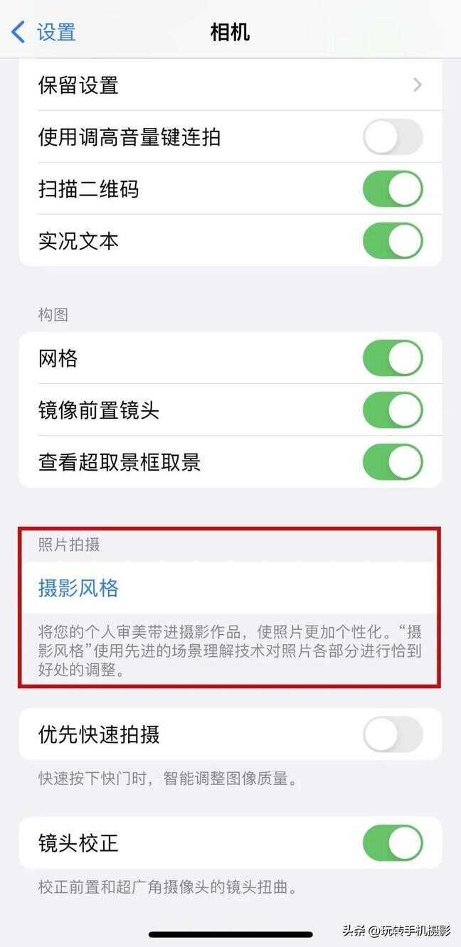 如果想要脸部柔和一些,不要这么过度锐化的话,我们可以往下滑动,关闭「优先快速拍摄」和「智能HDR」。