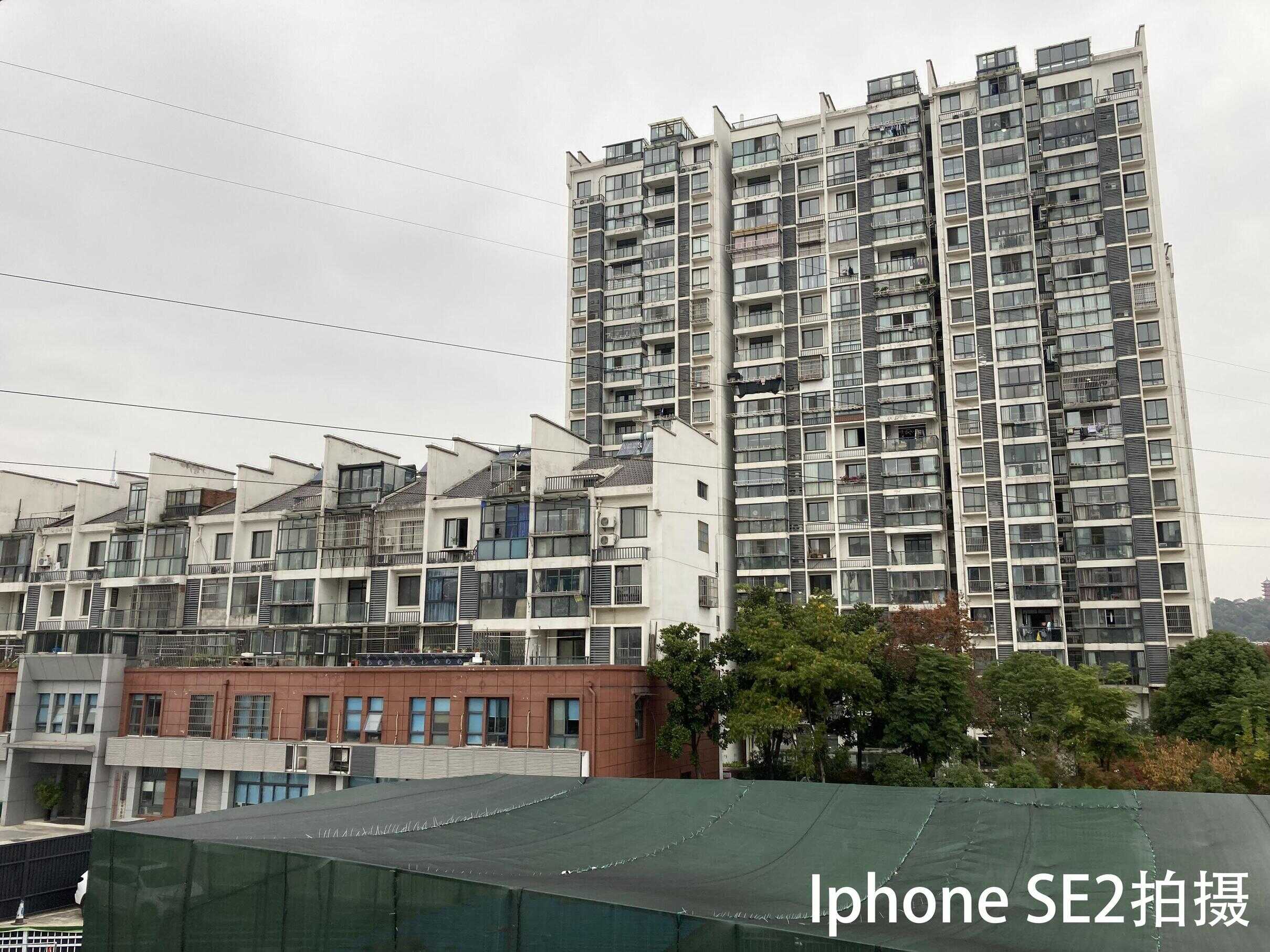 三张照片中iphone SE2是最还原阴天场景颜色的,并且对于建筑物的颜色还原也是最好的。