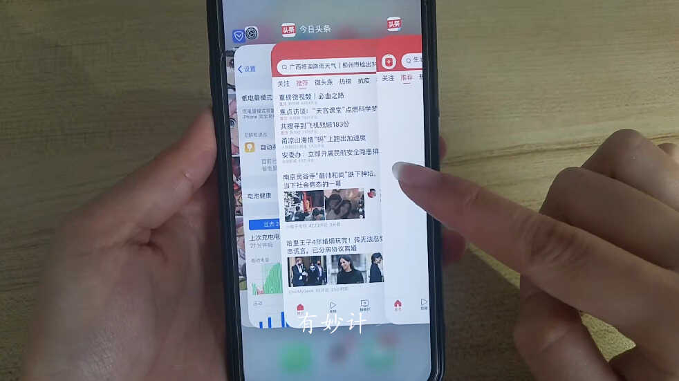 我们关闭的时候可以直接从下往上滑,它就会弹出我们浏览过或者启动过的软件了。然后我们把这些软件全部清理干净,这样也能节省一些电量。