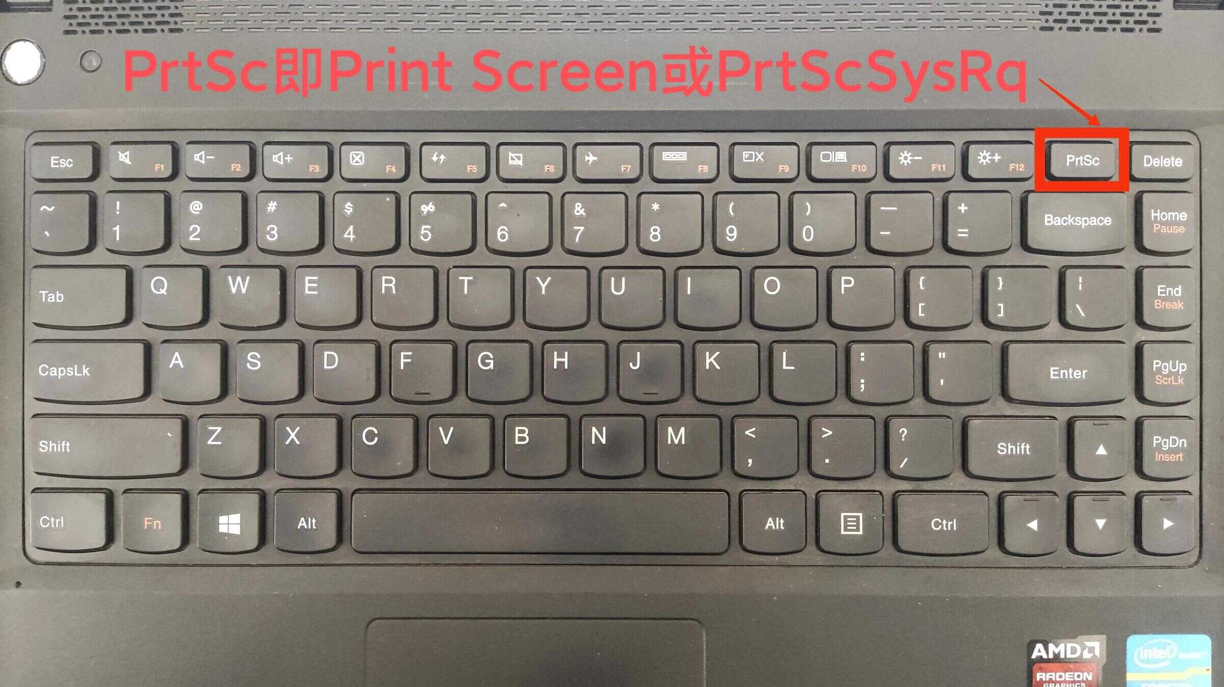 - 笔记本电脑按“PrtScSysRq”或“PrtSc”键。
