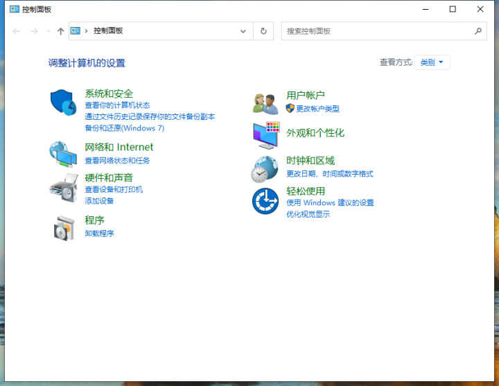 2、在控制面板界面中我们可以看到右侧有查看方式,需要对查看方式进行调整。
