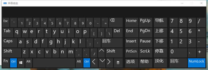 6、打开的屏幕键盘也就是软键盘就是这个样子了,直接用鼠标点击上面的按键,就能跟敲键盘一样按出键位的字母了。