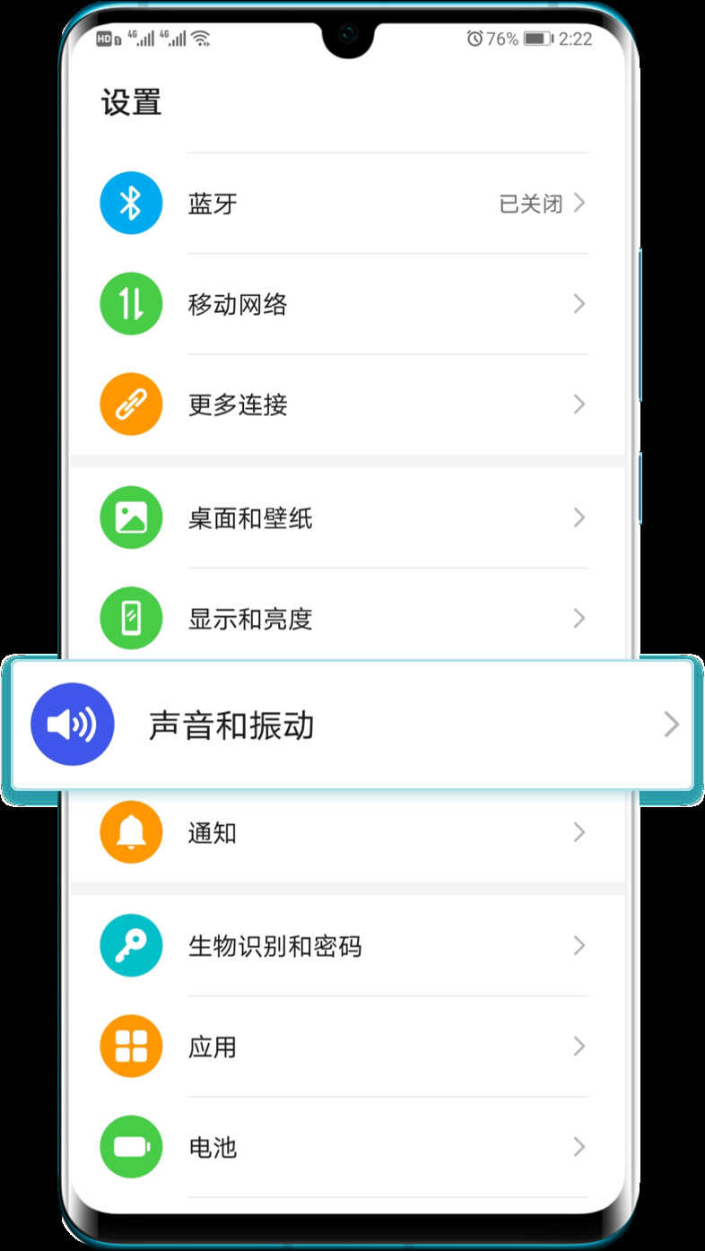 打开【设置】 ,选择【声音和振动】