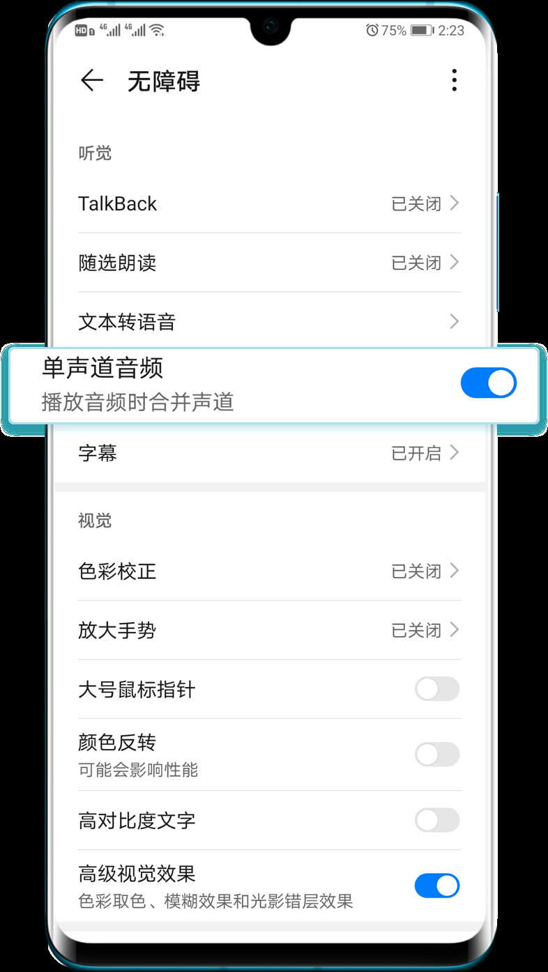 开启单声道音频开关,