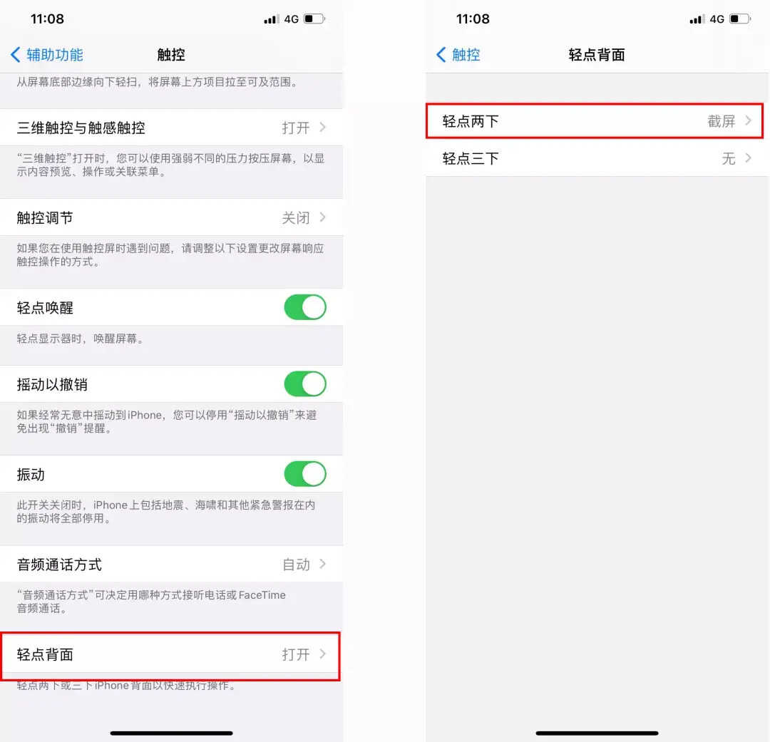 如果你的iPhone升级到了iOS14,那么轻点背面两下就能截图了。
