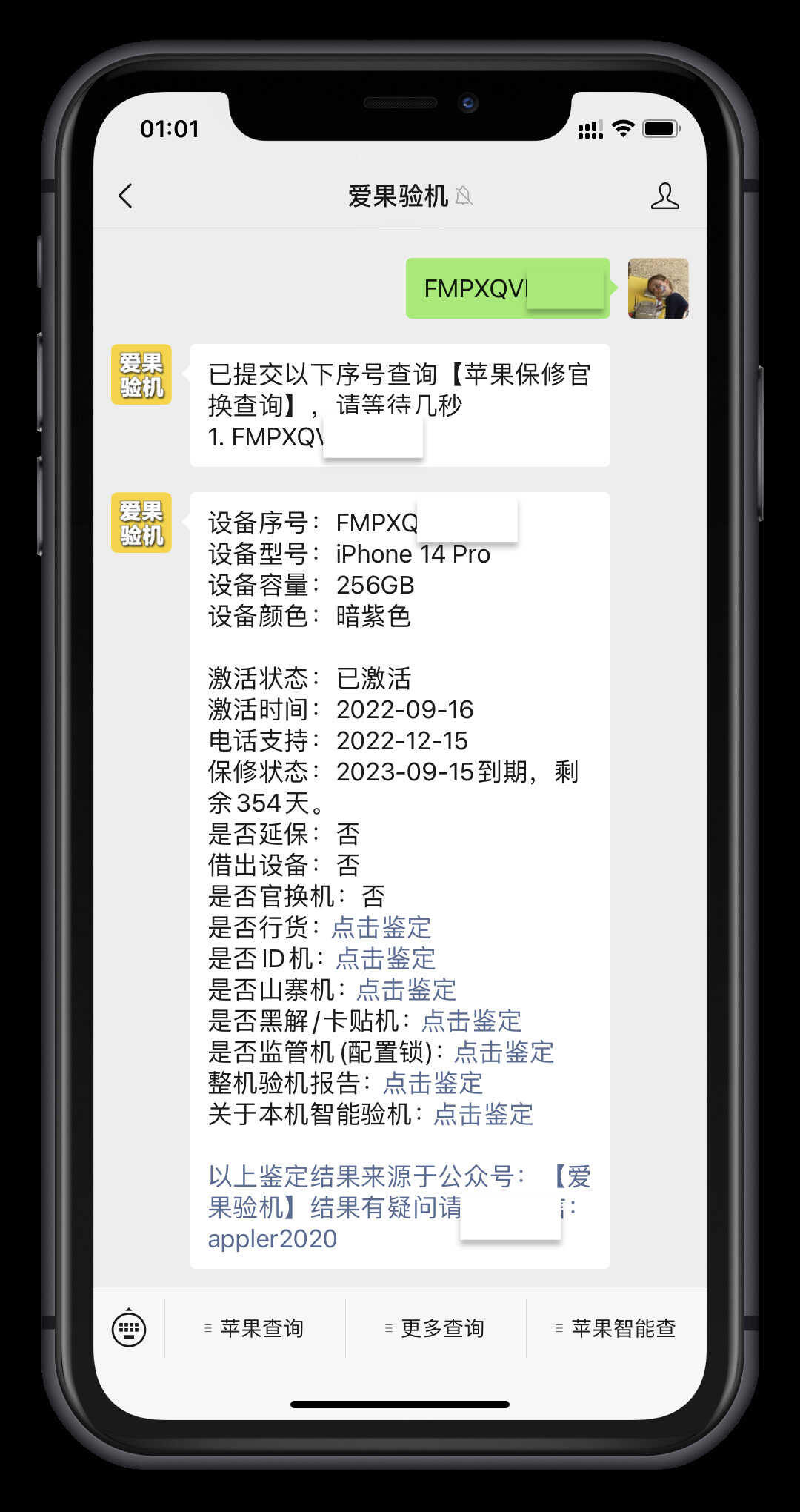 电池健康也可以作为判断手机新旧的依据,如果低于80%,就说明是使用了好些年的手机。除此之外,大家还可以在购买iphone之前查询一下序列号,可以检查出机器的真实信息,包括激活日期,内存容量,销售地,销售类型等等。