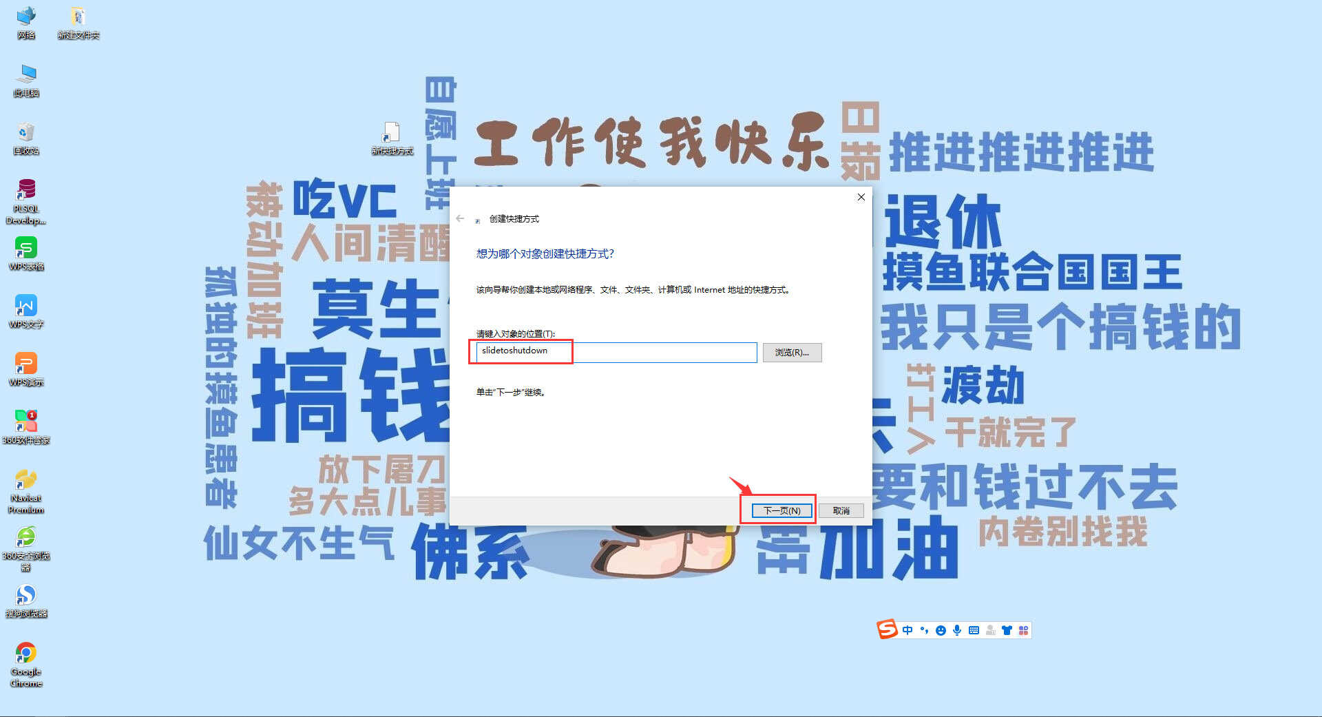 然后如下输入" slidetoshutdown ",点击下一步,如下图;