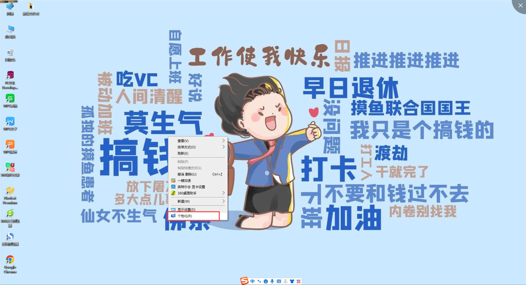 4、壁纸也可随时更换,点击鼠标右键找到个性化