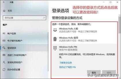 第3步:可以看到里面有各个类型的密码设置,选择你的密码类型点击它后,就会出现一个“更改”的选项,这样就可以更改密码啦!