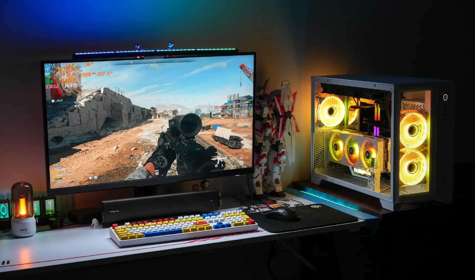 通过MSI Center开启灯光同步,将整机的色彩变为白色,效果再次拉满。