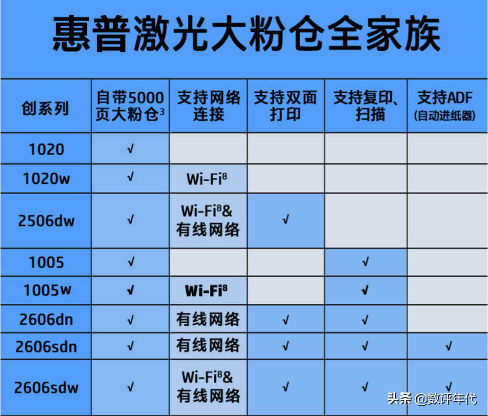 从惠普激光打印机全家族列表中看出,惠普1005打印机不支持有线网络和无线WIFI网络,惠普(HP)1005w完美支持WiFi网络连接。