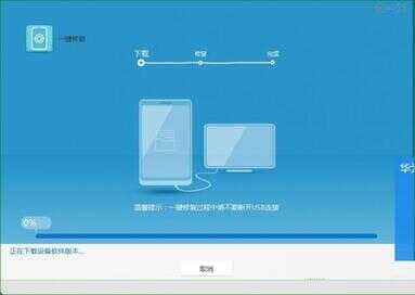 电脑中,HiSuite工具界面,我的工具,手机恢复。显示已成功进入一键修复模式后,按开始。接着,程序会自动下载相关ROM,最好是有线网络,会下快些。下载结束后开始刷机。