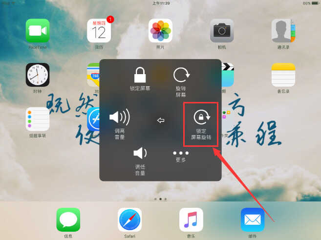 将iPad侧放,找到下图的按钮,向下滑动,就可以锁定屏幕不旋转了。