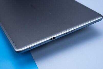 荣耀平板6的体积在10.1英寸平板中属于较为轻巧,机身重量为460g。屏幕采用9.4mm的等距微边框设计,让屏占比提到了80.6%,加上16:10的屏幕比例,带来更好的视觉体验。
