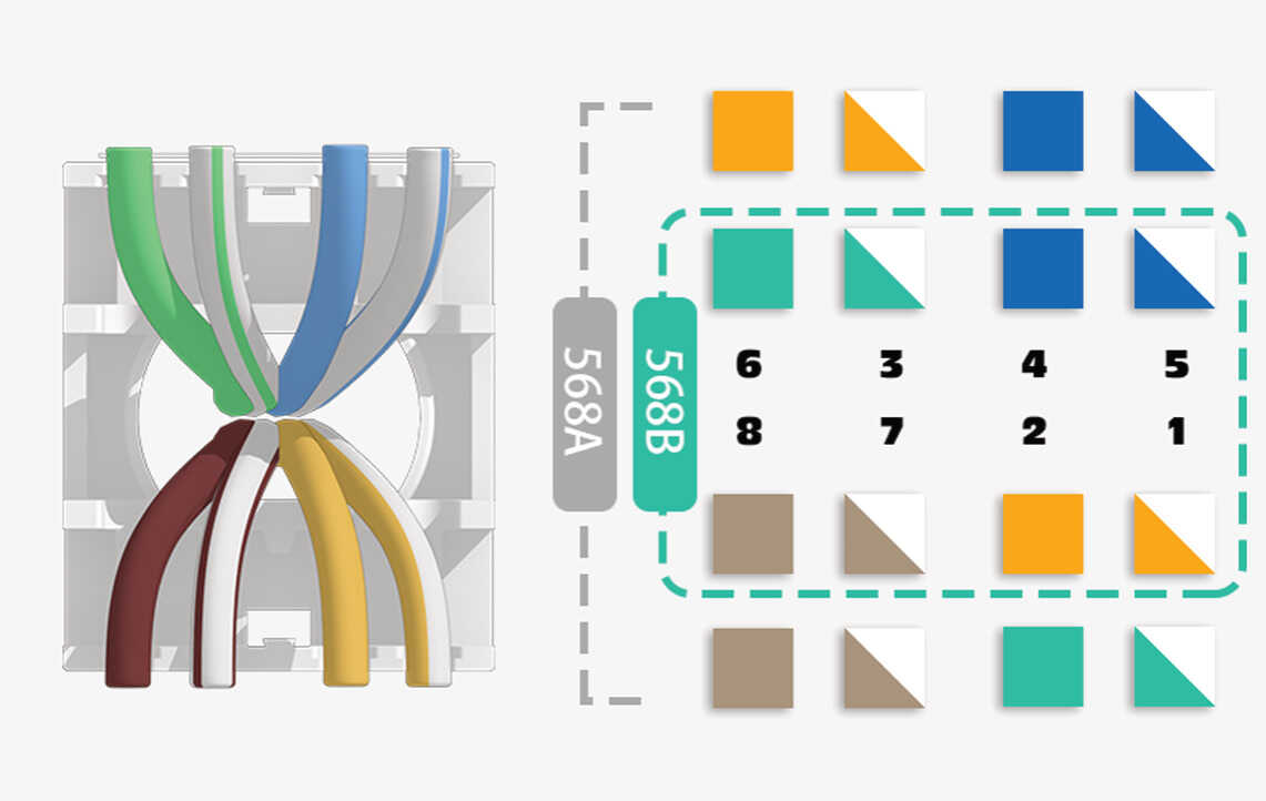 注意:因为网线的双绞线成对成对的,线序也一样,花色和纯色相间;即使没有说明书,你也可以根据橙蓝绿棕、花左纯右。线3线5对换。