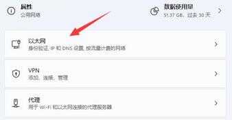 第二步,点击上方“以太网”进入你正在连接的网络(如图所示)。