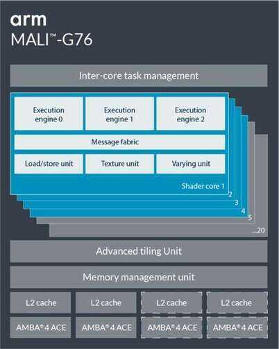 麒麟980还率先采用Cortex A76架构,相比于上代麒麟970提升75%,而能耗上则提升58%。并且这套全新设计的A76 CPU架构,由2个超大核、2个大核和4个小核的三档能效架构组成,采用DynamIQ调度技术,能够进行各核心之间的搭配调度,针对于不同的使用场景,能够把不同核心之间进行灵活调度,执行效率更高。