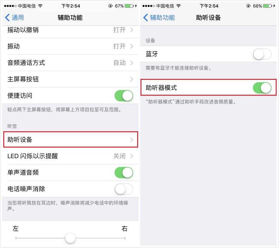 进入【设置】-【通用】-【辅助功能】-【助听设备】-【助听器模式】打开这个开关就可以了。