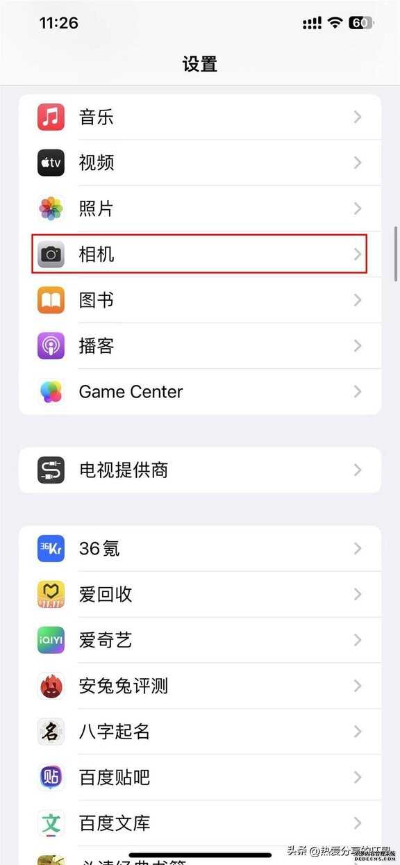 1、轻点主屏幕的 “设置”图标,在“设置”屏幕向上轻扫找到并轻点“相机”。