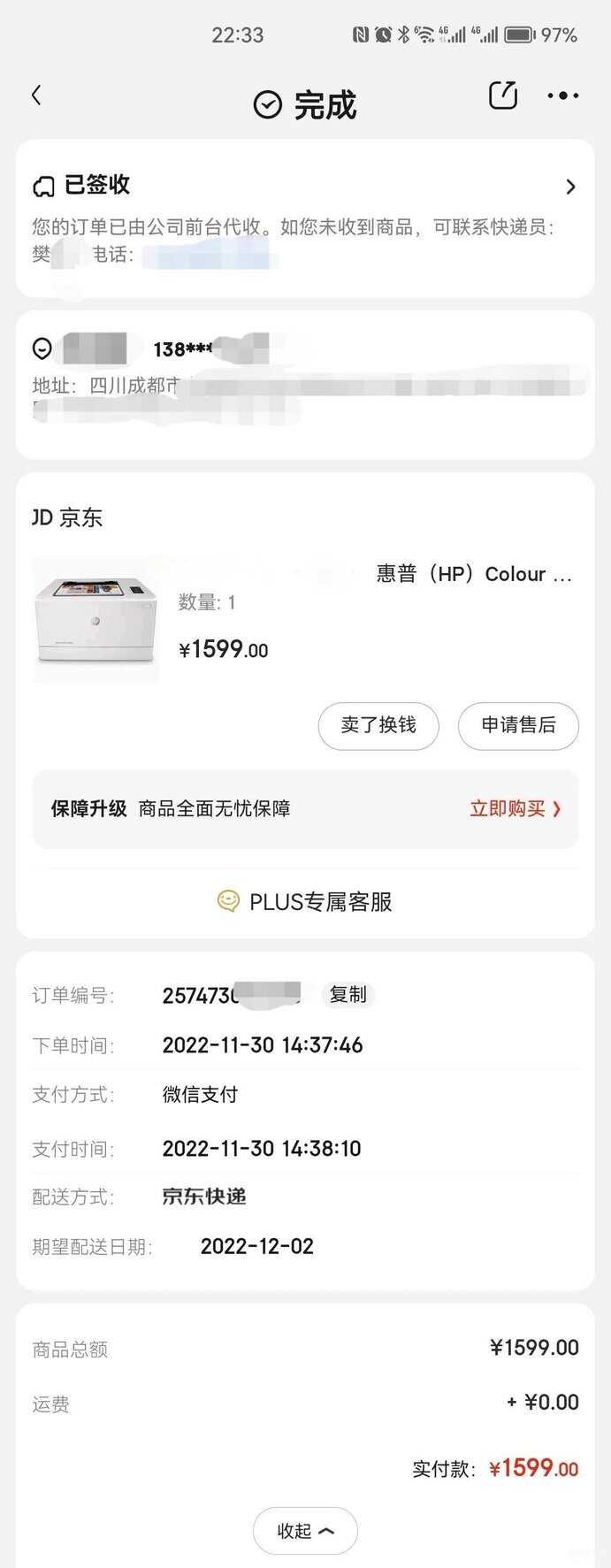 一直想购买一台彩色激光打印机,喷墨打印机家用打印较少,时间久了容易坏,虽然现在技术不容易堵针头,但必须一直通电自动清洗才行。激光打印机就不会有这样的问题,放再久的时间也能正常打印,而且这款打印机国产耗材便宜,大容量3200张60元左右,估计打印1-2年了,定影器家用一般都不用更换。 激光打印机价格都比较高,一直M254和M479这几款选择,M254nw 2499元购买到家后,显示通信擎引错误,硬件问题退货了,M154nw 1599元也是看到价格功能合适购买,到货测试相当不错,主要价格便宜,官方序列号、型号查询保修期从2022年9月-2023年12月20日,保修卡,资料全部都有。