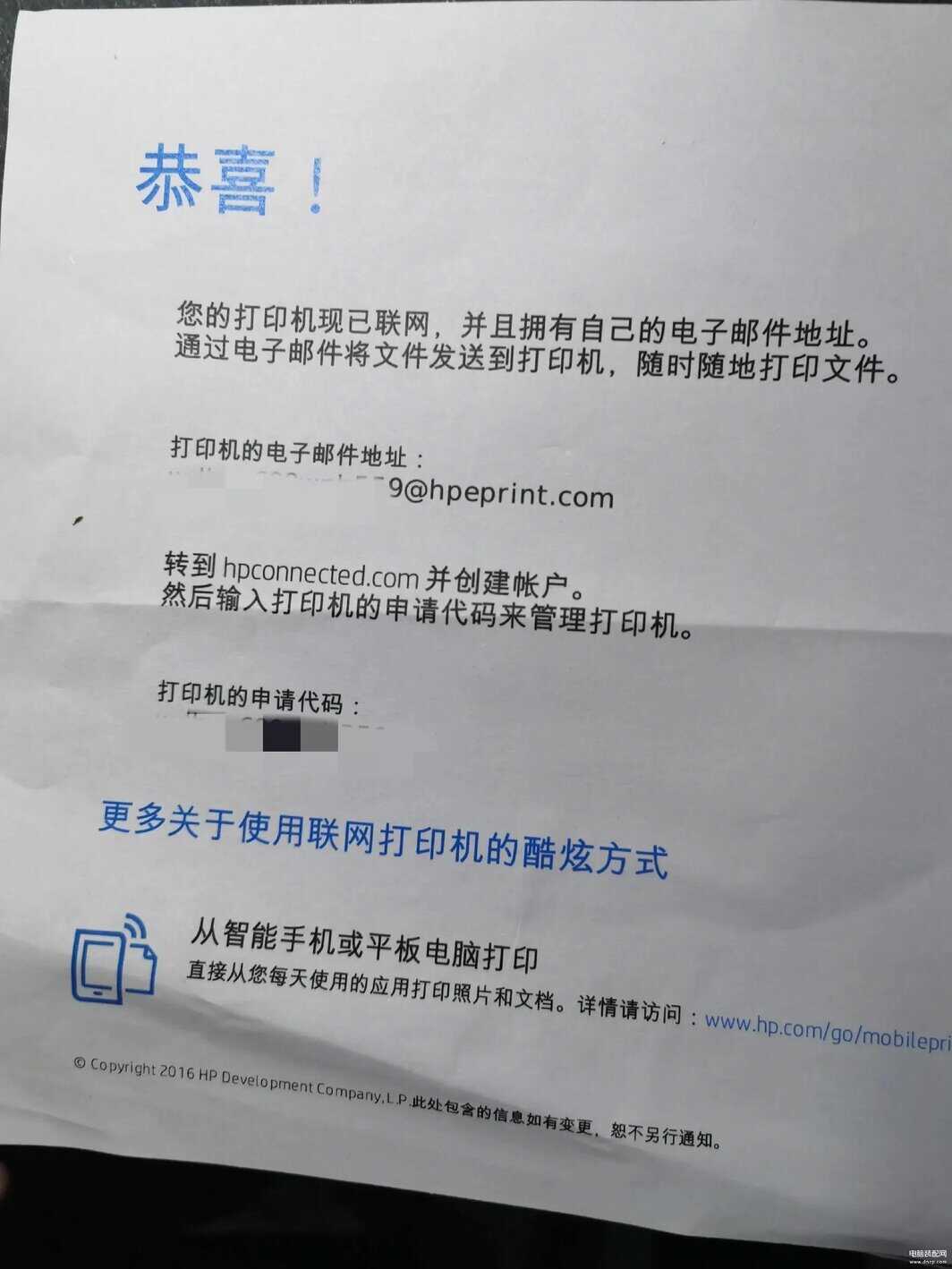 另外HP邮箱地址打印,速度太慢了,邮件发送成功后,需要等HP公司那边下发到打印机,从发邮件到打印时间间隔50分钟,打印成功后会回邮件告诉你打印成功。