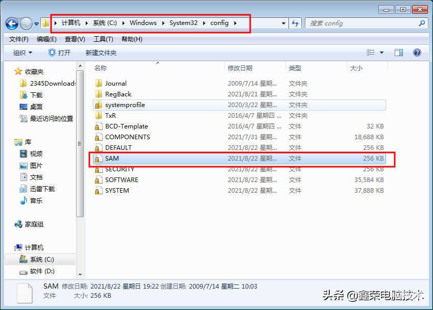 七、删除SAM文档。如果上面的DOS命令不会使用,可以用下面这个方法:同样还是进入winPE系统,找到系统盘C盘,找到以下路径windows\system32\config在这个文件夹中找到SAM文档,删除掉,重启电脑进入系统即可。