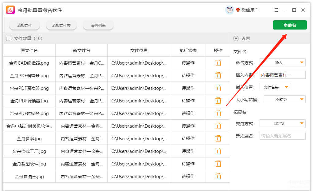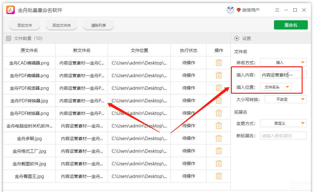 第三步、这里以插入为例,输入插入内容和插入位置后,在左侧是可以看到新文件名的;