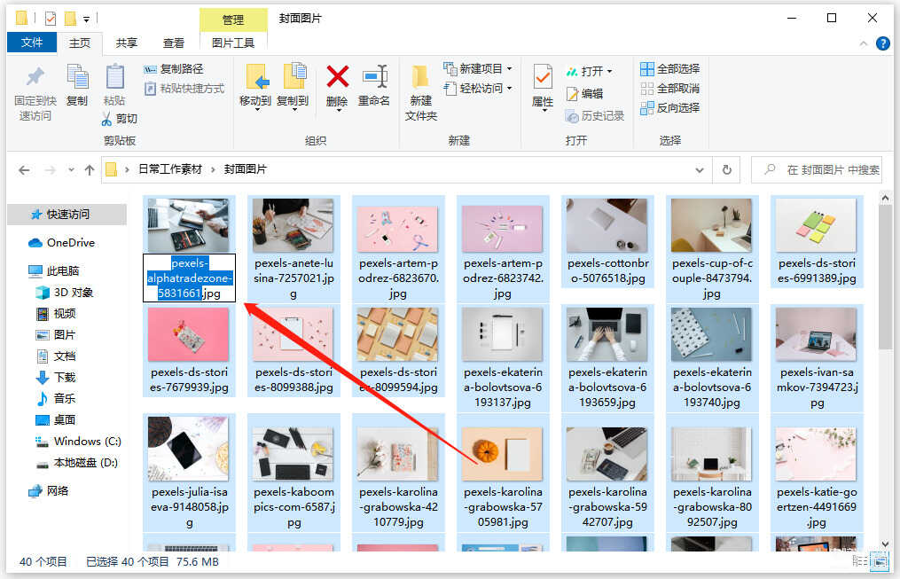 在Windows中无需借助任何工具即可实现对照片进行批量重命名,方法如下: