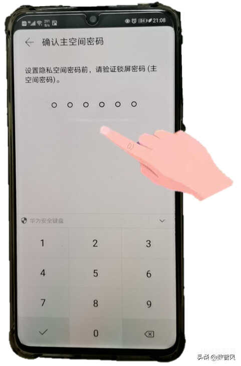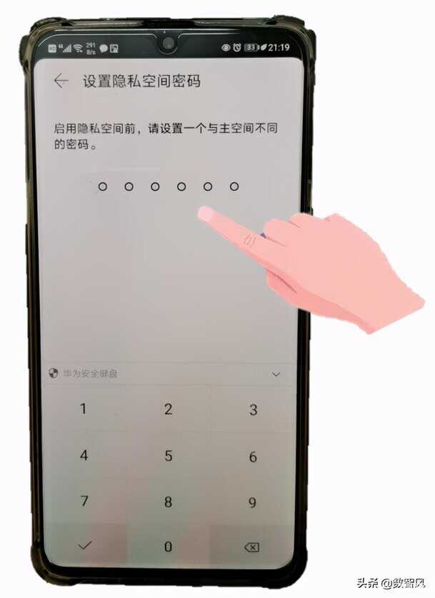 5、输入主空间的锁屏密码后,系统会要求为隐私空间设置一个独立的密码来进入。