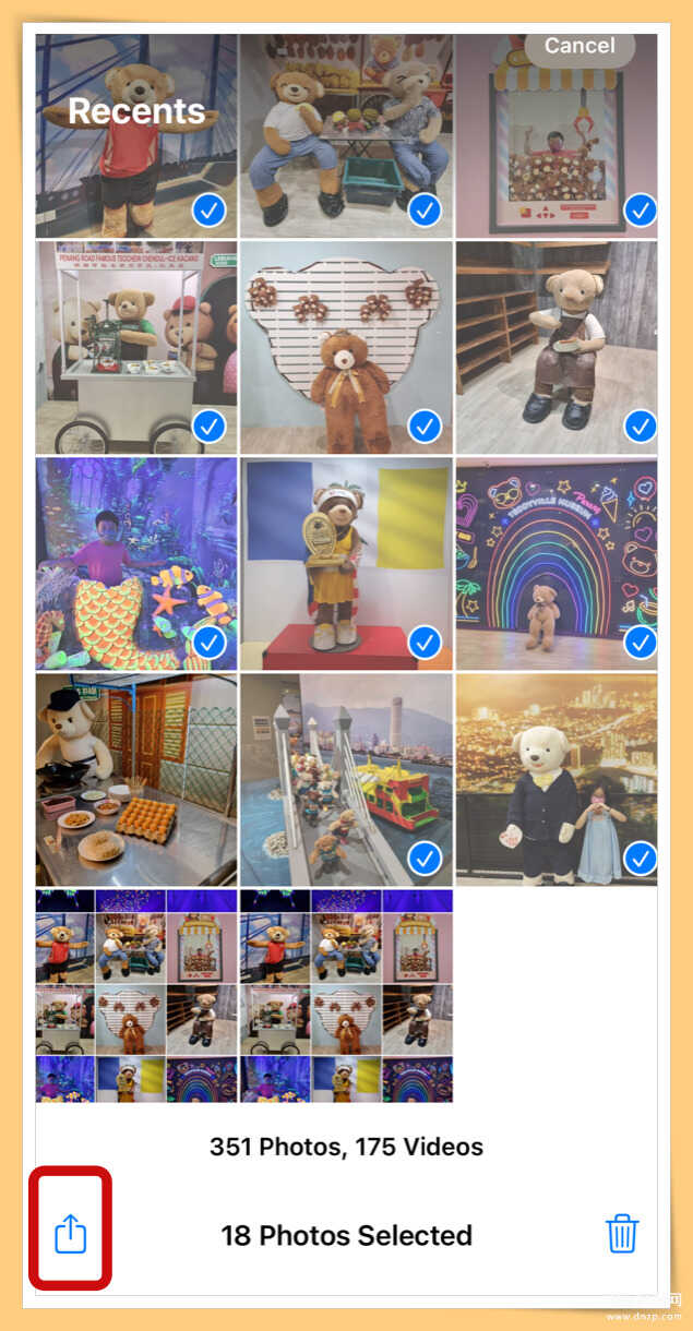 ✅步骤2:点选右上角“Select”按钮,将要分享的照片一起选起来