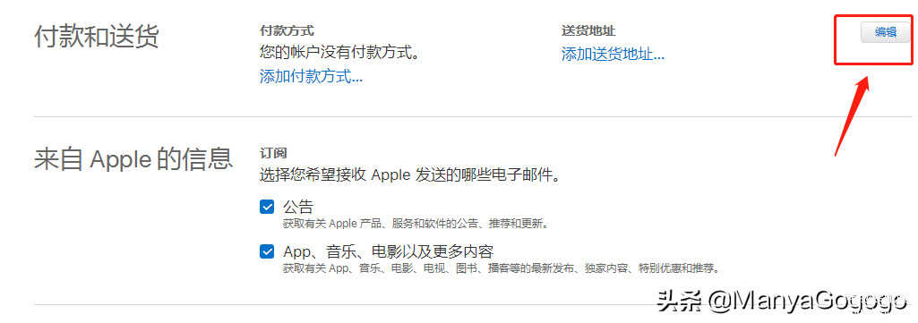 5、 邮箱验证完后,就会进入个人资料页面,这时,系统已经默认你已经注册成功了,但是,有些信息我们需要补充完善一下,在下面的“付款和送货”这里点击编辑。