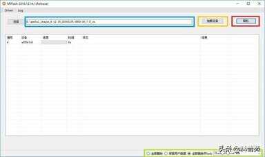 第五步,刷机工具下载完成后,如遇系统安全提示请选择安装,打开xiaomiflash.exe将上一步复制的地址粘贴到下图蓝色的位置,点下图黄色圈中的加载设备,刷机系统会自动是被设备,点下图红色全选中的开始刷机执行刷机,注意:带BL锁机型会自动选择全部删除并lock,无BL锁的请手动选择全部删除,如下图绿色区域
