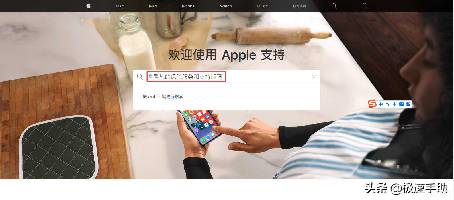 第五步,在电脑的浏览器中打开苹果手机的官网,然后找到【技术支持】,并点击进入。