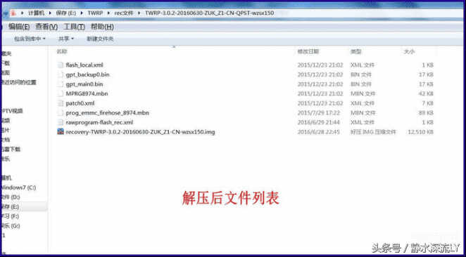 2.下载twrp3.0.2的高通QPST线刷包,并解压。(此包只是zuk z1的,不适用于其他手机,其他手机没有的,可以自行制作)