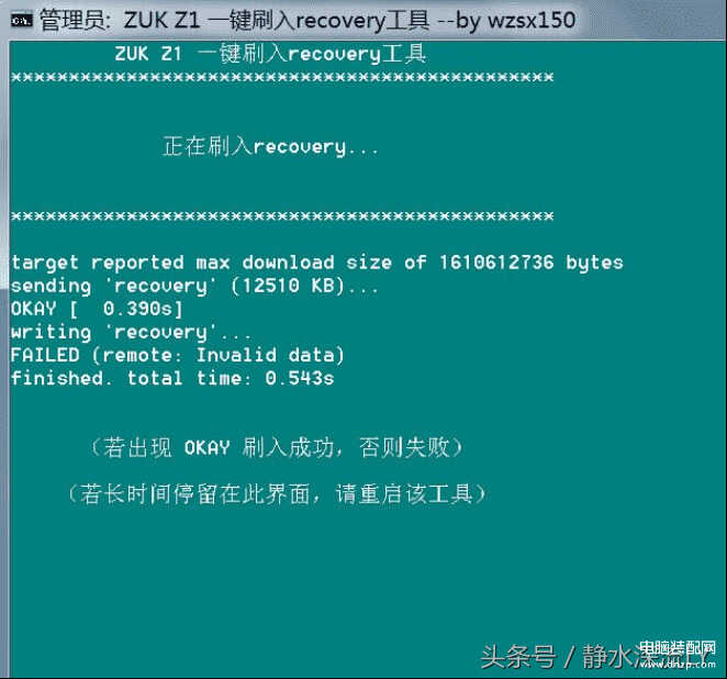 请注意:加粗的这个部分替换成recovery.img文件的目录,如果在同一个目录就不用改。这个命令是把rec临时刷入手机。如果手机没有“真解锁”,这个命令是不能执行成功的。