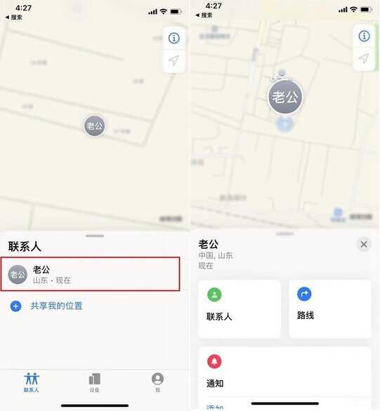 2、这时候打开对方的手机就能看到邀请通知,点击通知消息或者查找App同意共享,并选择“始终共享”,双方就可以实时共享位置了。