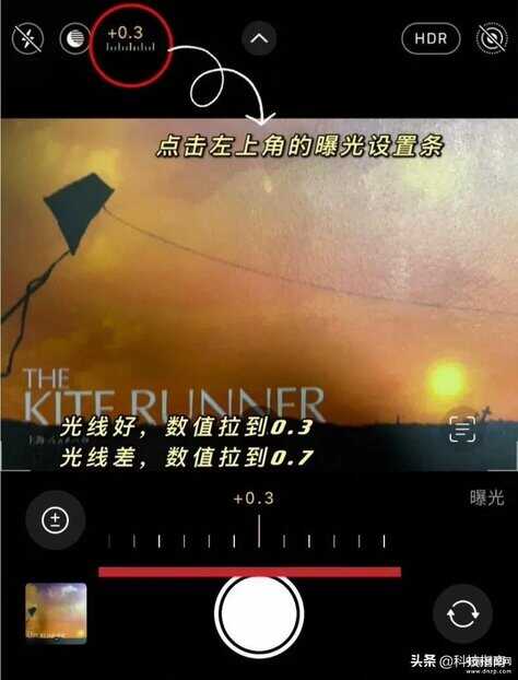 3、光线充足时,曝光值拉到0.3;光线差的时候,就拉到0.7。