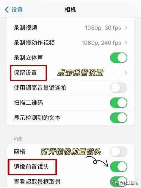 1、设置—相机—镜像前置照片—下面的保留正常曝光照片