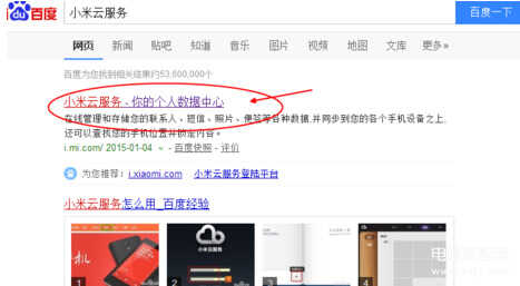 2、搜索之后单击进入小米云服务的官方页面,如下图。