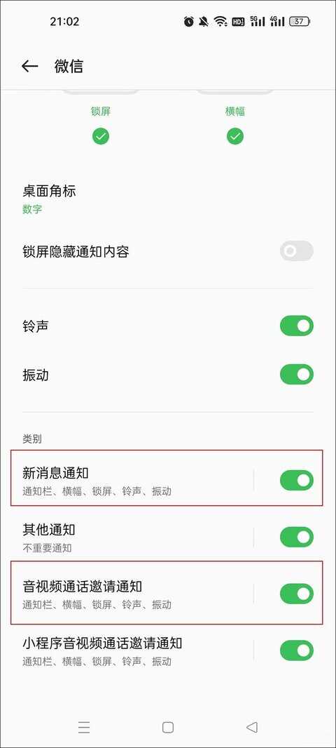 为了稳妥起见,设置好后,大家可以点【通知与状态栏】下的微信图标点进去,确认一下底部的【新消息通知】、【音视频通话邀请通知】都开启了没有,开启了就妥了。