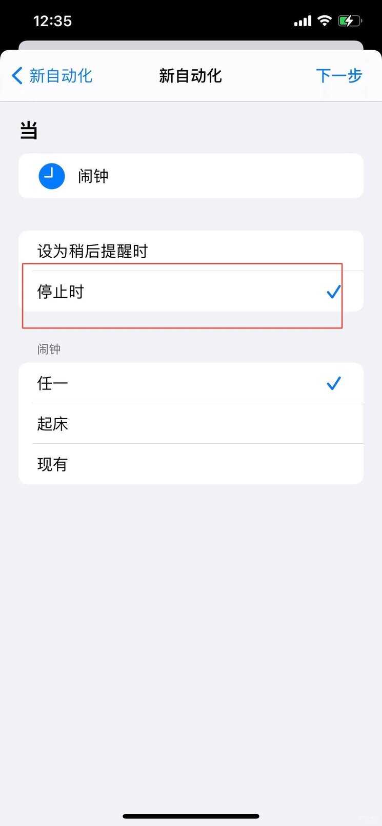 第二步:找到闹钟,点击进入,这里记住,要选择闹钟停止后,点击下一步