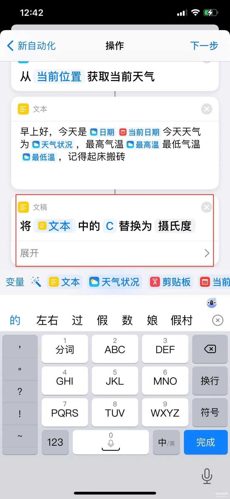 这里都写好后,后面想加什么就自己写就好,其实这里还能添加下雨记得带伞的提示,但是因为比较复杂,所以这个就后面再教大家了,先把这个简单的学会,毕竟快捷指令还有很多好用的功能的, 额,跑题了