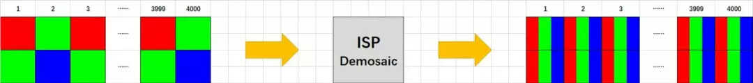 而Quad Bayer优势在于如果光线足够好(此处的足够好一般指的是晴天户外),厂商可以选择让CMOS输出全像素Quad Bayer图像,那么就会遇到一个关键的问题,ISP硬件一般只支持Bayer阵列,并不认识Quad Bayer的排列方式,如果强行让ISP进行Demosaic必然会导致颜色混乱出错。