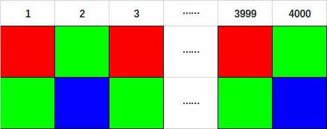 这时候可以看到每个像素其实只能感应到一种颜色光线的强弱,假设一个1200万像素的传感器,能感应到红色和蓝色光线的只有各300万像素,能感应到绿色光线的有600万个像素。