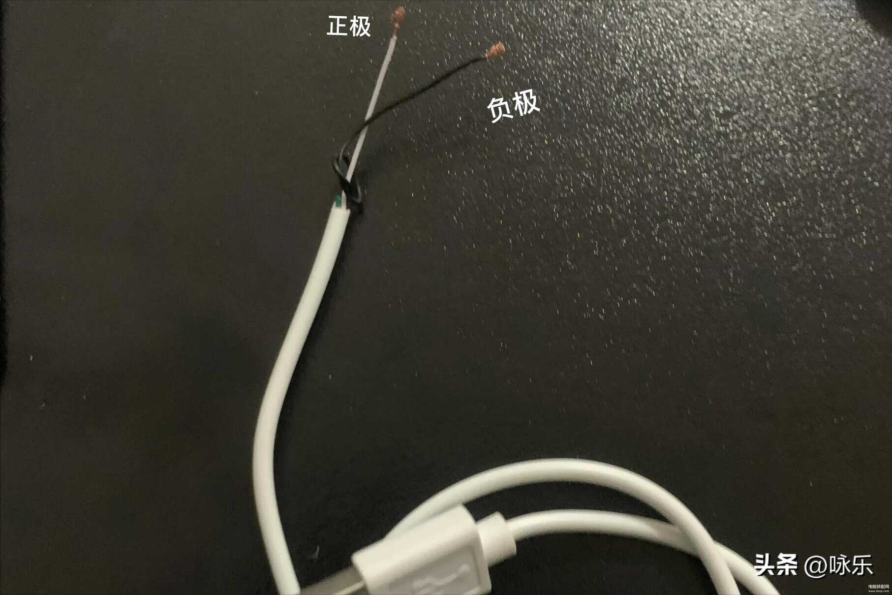 因此,我们只需要一个usb线剪开,把正负极直接接在相应触点,即可完成充电,根据上述理论,随便早找一条数据线,剪短,我们开干: