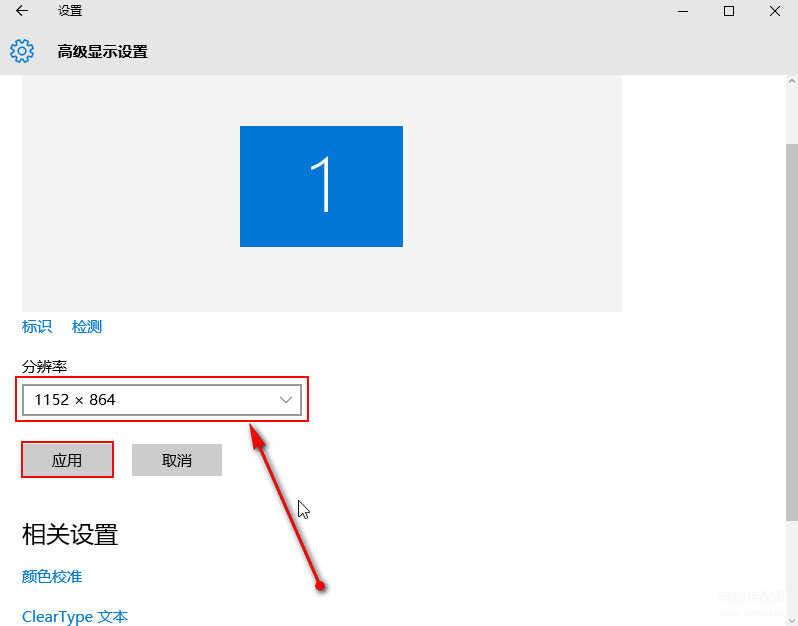 3、在下方的分辨率设置自己想要的分辨率,然后点击应用,如下图所示: