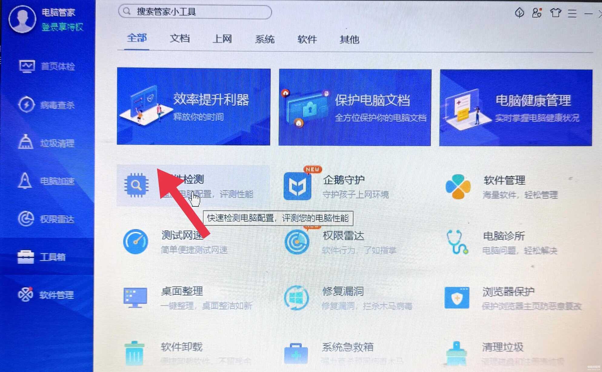 8:打开电脑管家的硬件检测