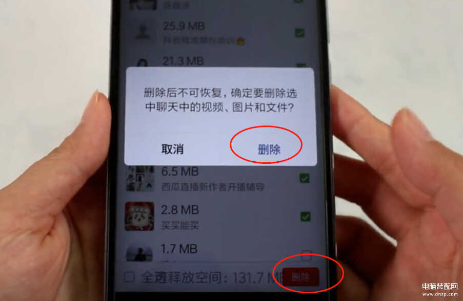 在这里可以选择删除和朋友聊天时保留的图片和视频,点击删除,然后确定批量删除会有点慢,所以过程需要点时间,