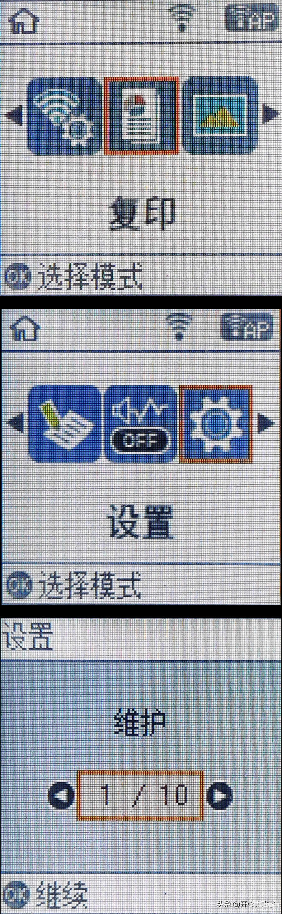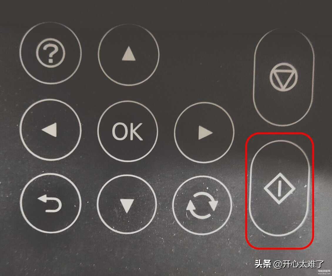 也许是为了防止误操作吧,打印和执行清洗喷嘴的确认键不是“OK”键,而是执行复印操作的启动键,这个需要注意,按“OK”键是没有反应的。